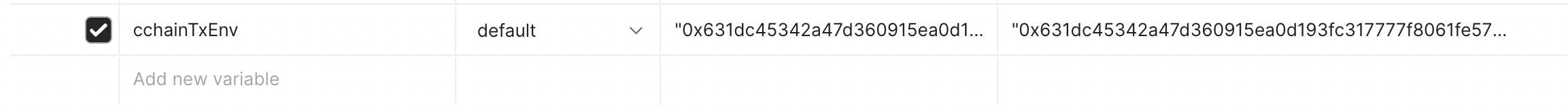 Only default variables are used in the Avalanche Environment file. To learn more about using the secret type of variables, please checkout the Postman documentation.