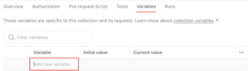 The environment variables can be used to ease the process of making an API call. A variable contains the preset value of an API parameter, therefore it can be used in multiple places without having to add the value manually.